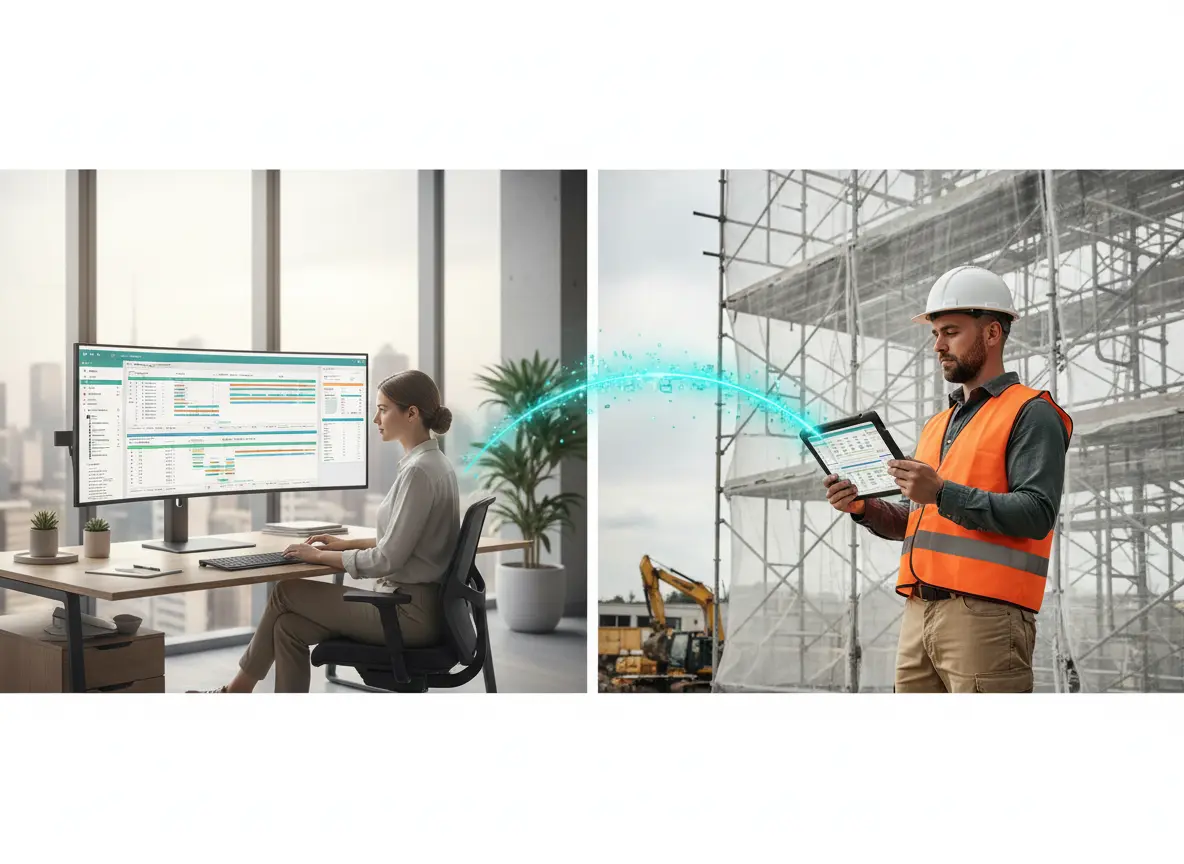 They rely on different tools. The office uses schedules and emails, while the field uses texts and calls. Without a shared system, updates arrive late or not at all.